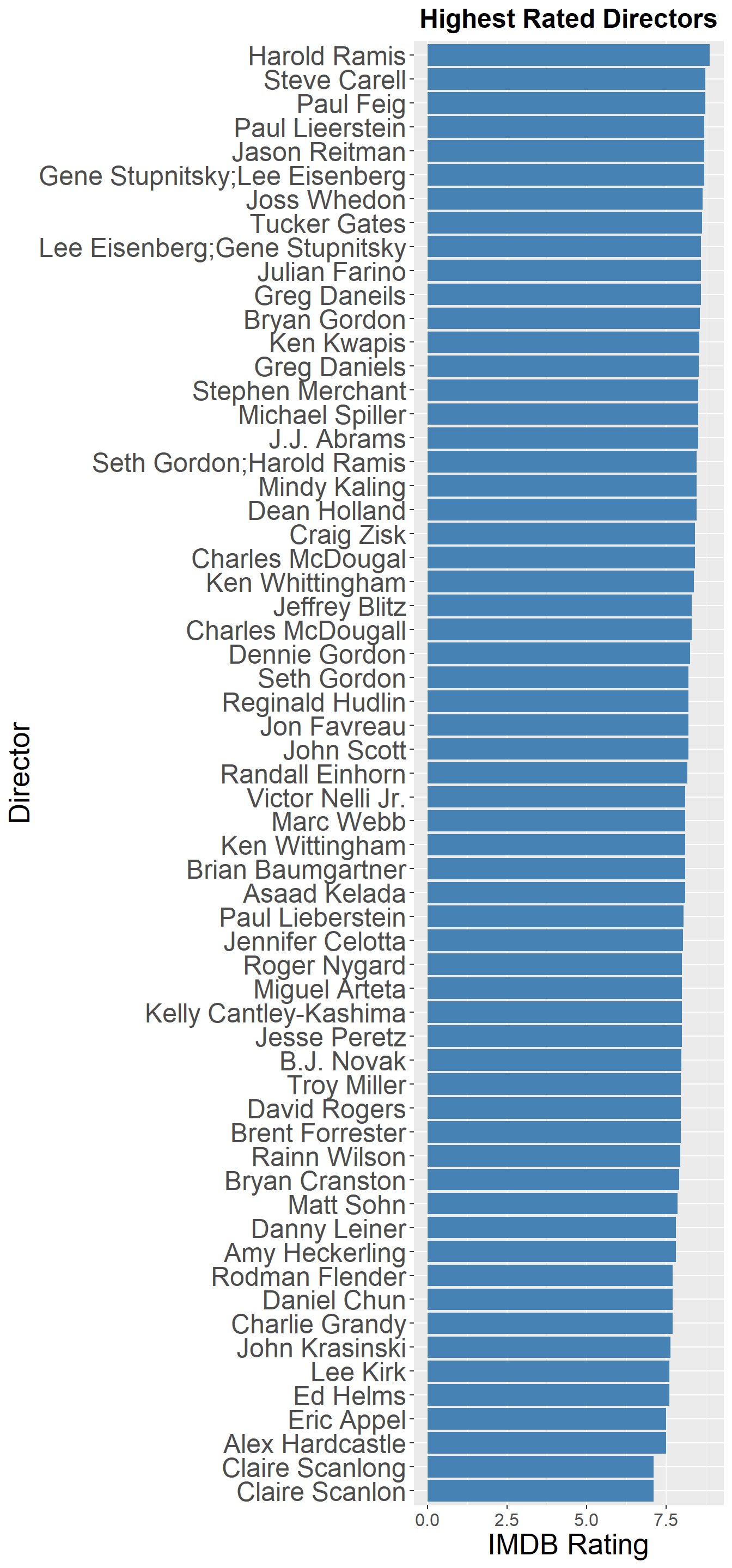 Like all millenials, I’m a big fan of The Office. I was excited to find this dataset via tidytuesday and decided to look at who the highest rated writers and directers are. Spoiler: Mindy Kaling did a lot more than play Kelly Kapoor.